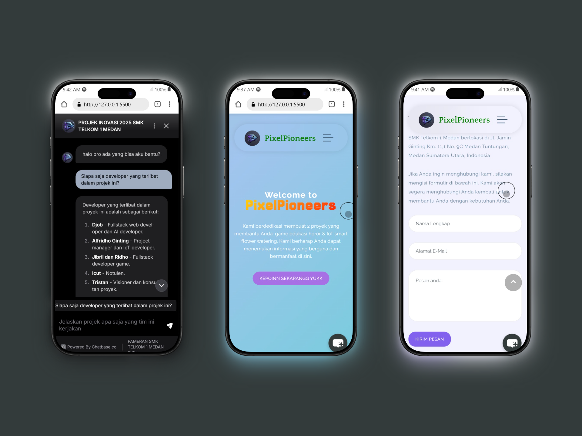 Halo kami dari tim PixelPioneers. Kelompok ini terdiri dari Alfrifo, Djob, Ridho, Tristan, Jibril, dan Icut. Kami bekerja sama untuk menciptakan solusi inovatif dan kreatif dalam dunia teknologi. Dengan keahlian yang beragam, kami berkomitmen untuk memberikan hasil terbaik dalam setiap proyek yang kami kerjakan.